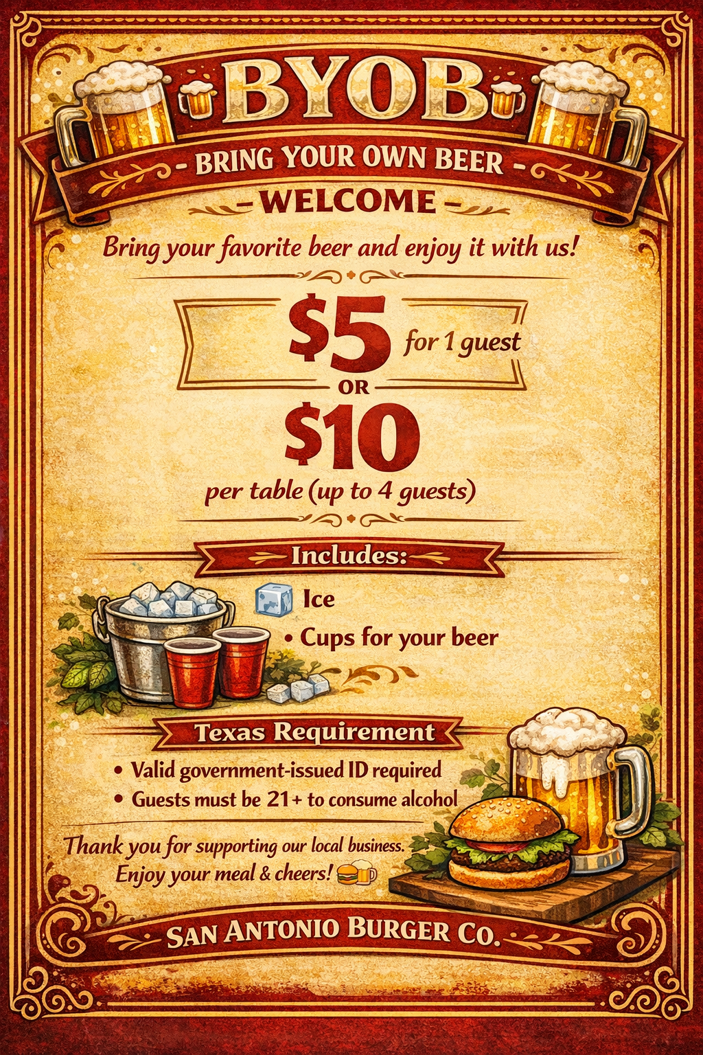 We are at the center of South Texas Medical Center right here in San Antonio making the best burgers in town. Soon after we opened, our customers asked if they can get delivery. And that's how it started. We are proud to be the first and still the best in San Antonio in delivering great burgers to you.